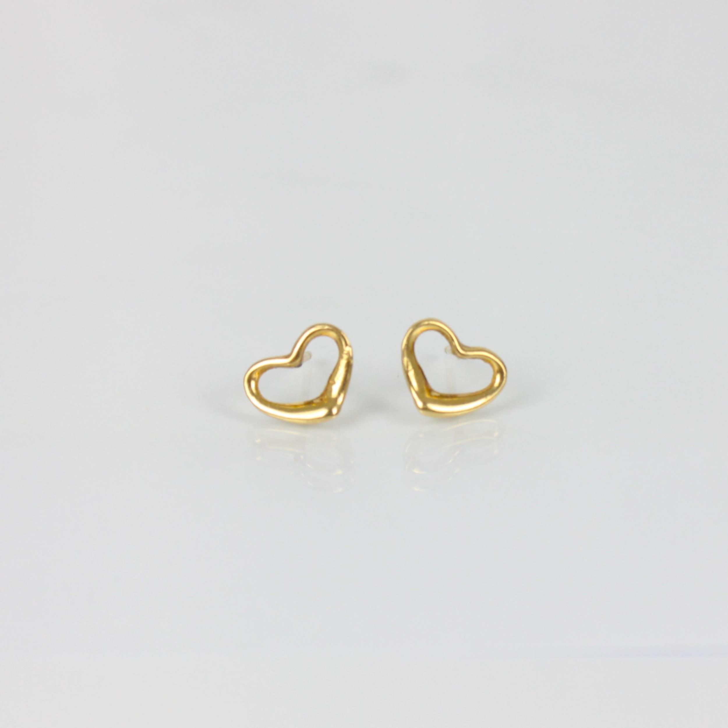 A pair of yellow metal earrings, in the style of Tiffany and Co, the heart shaped openwork stud earrings with associated post and butterfly fittings, stamped to reverse possibly 14k, 1cm wide, gross weight 1.3gms (2)