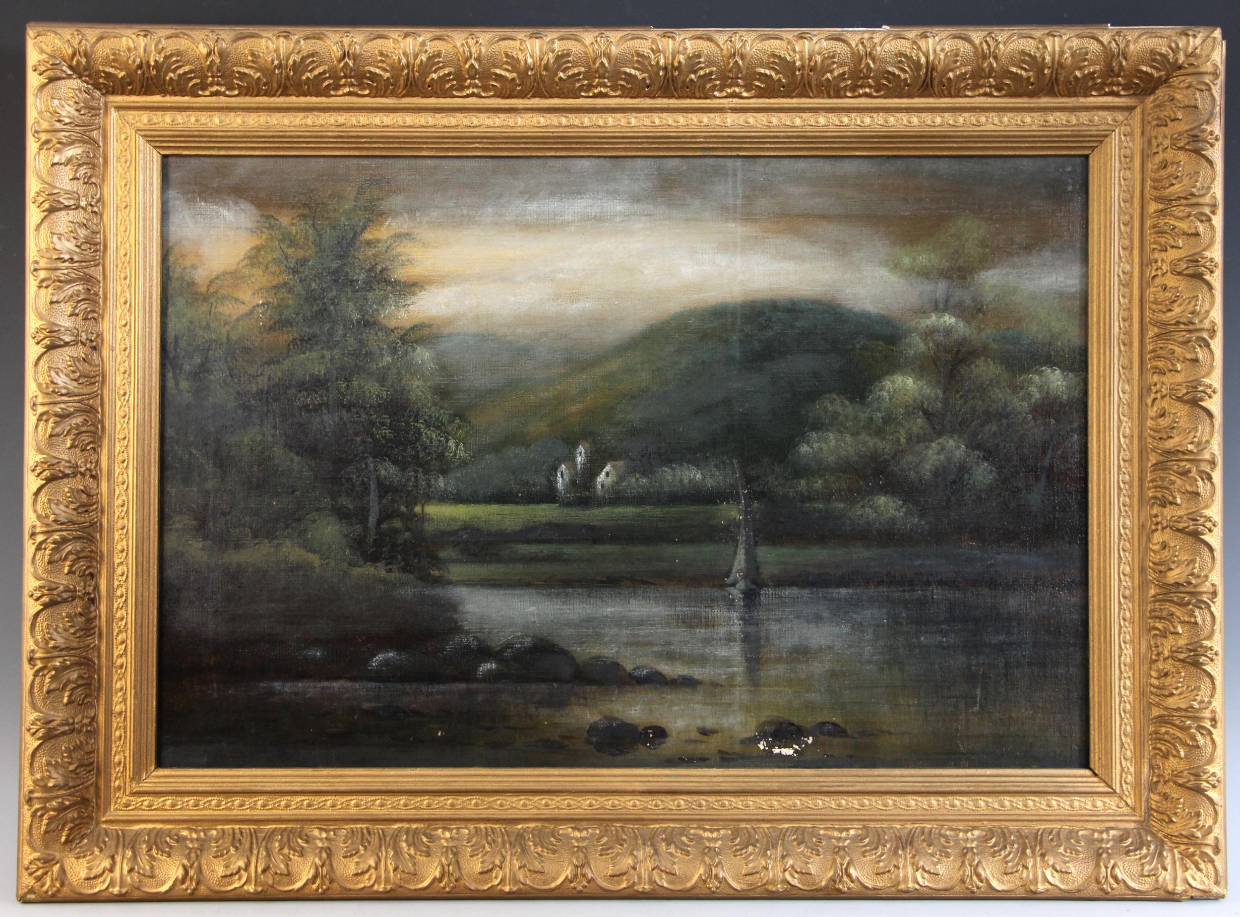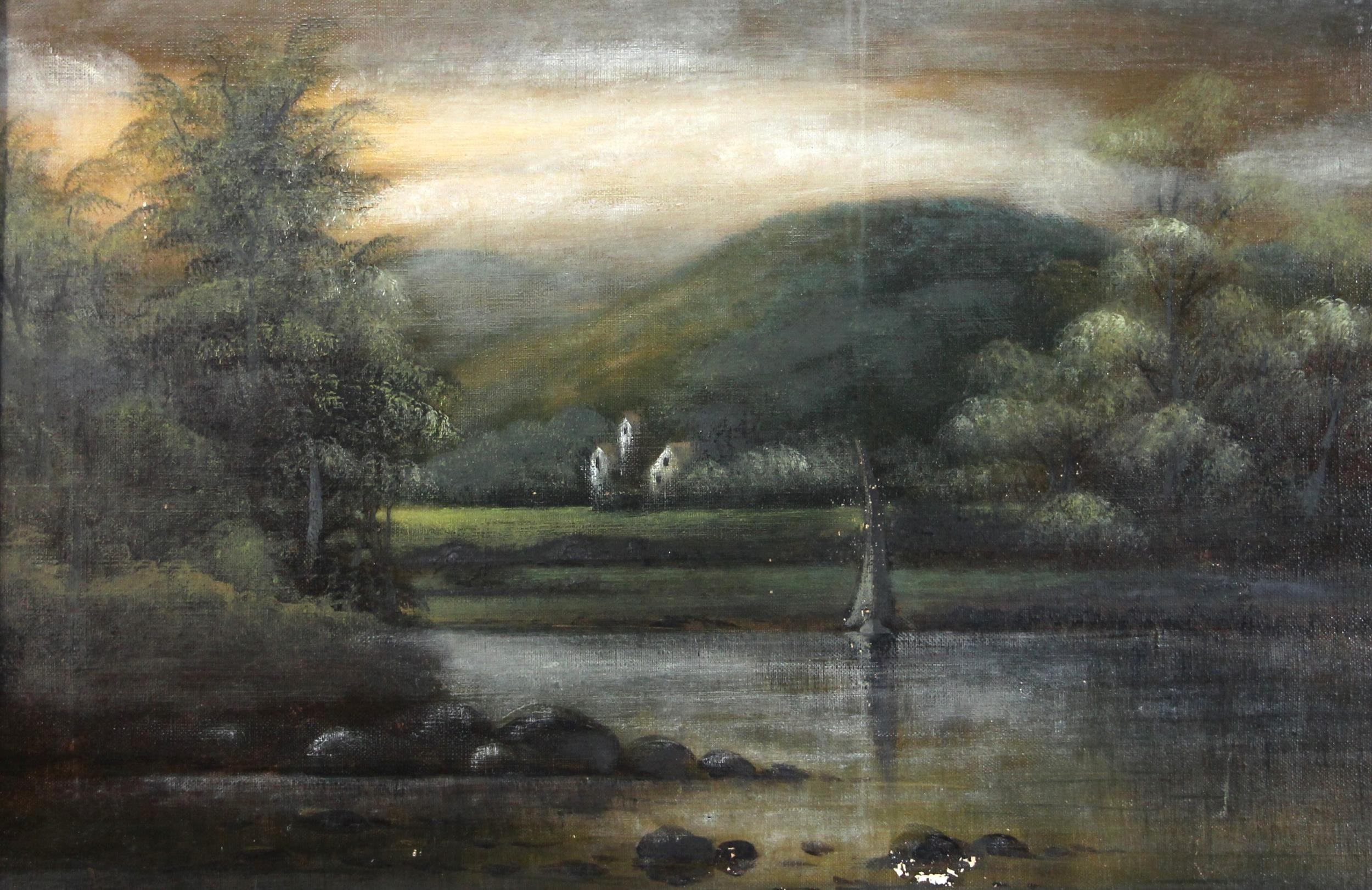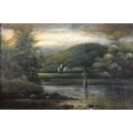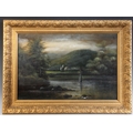 English School (19th century), A river landscape with jetty...