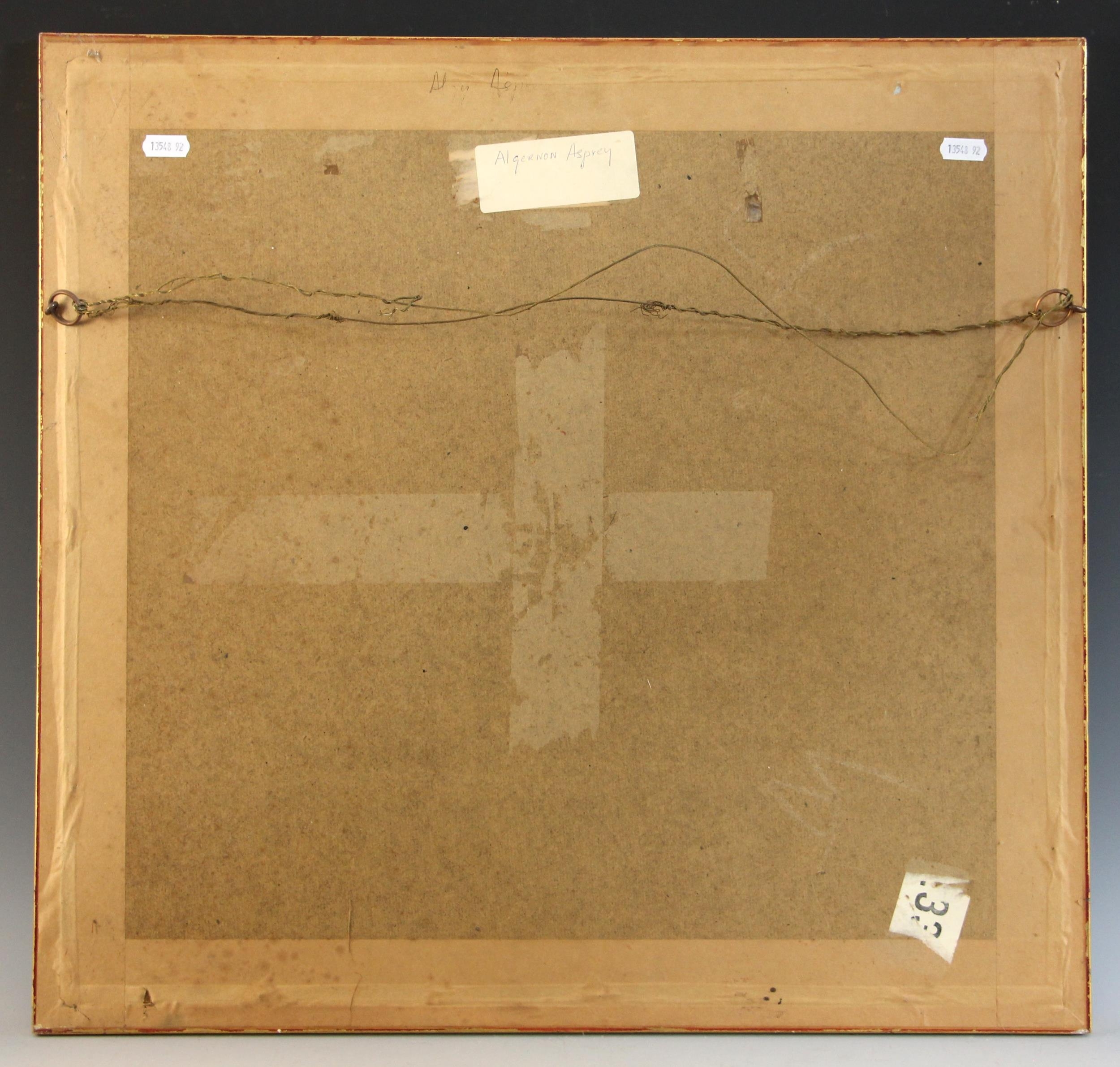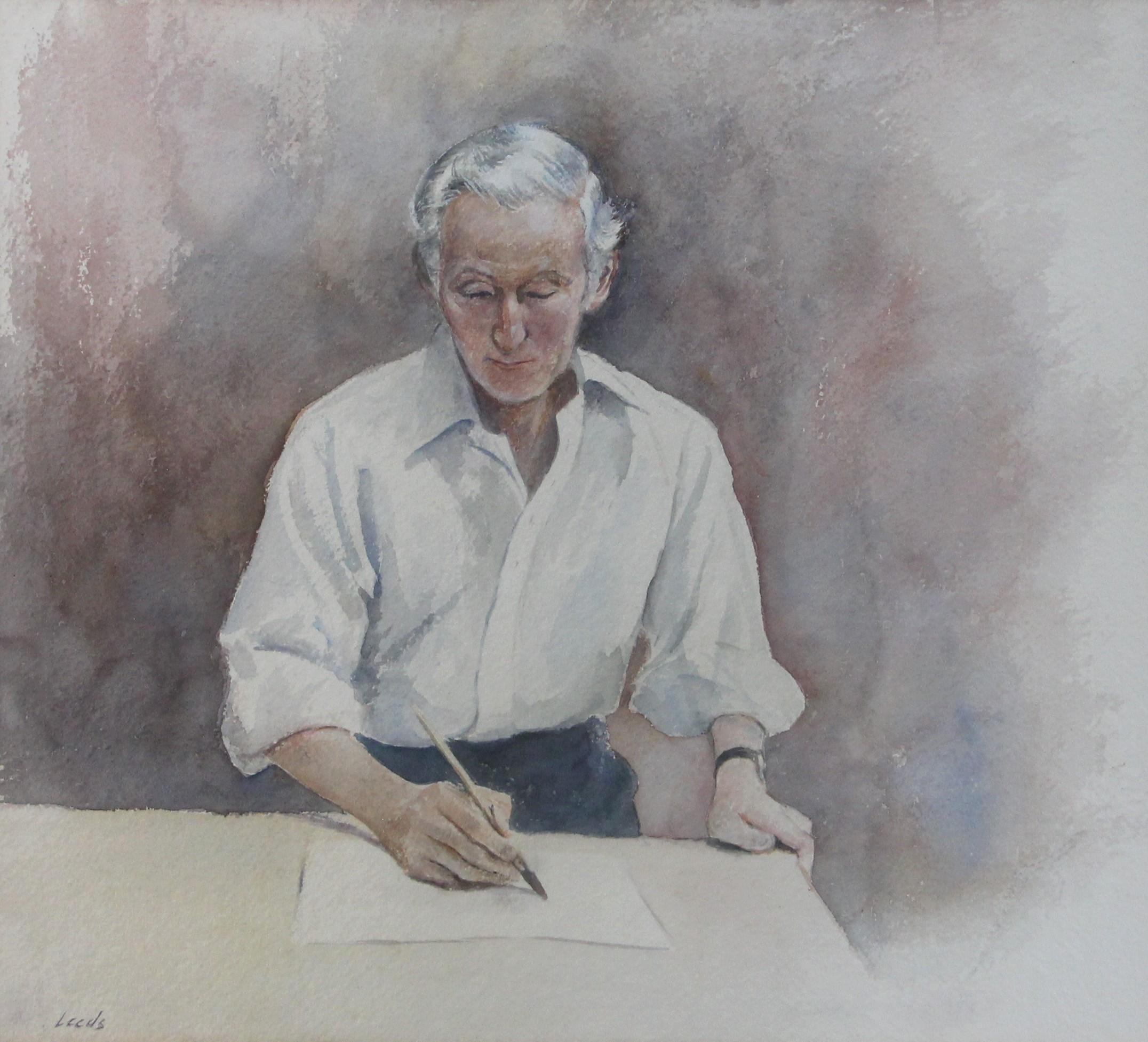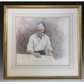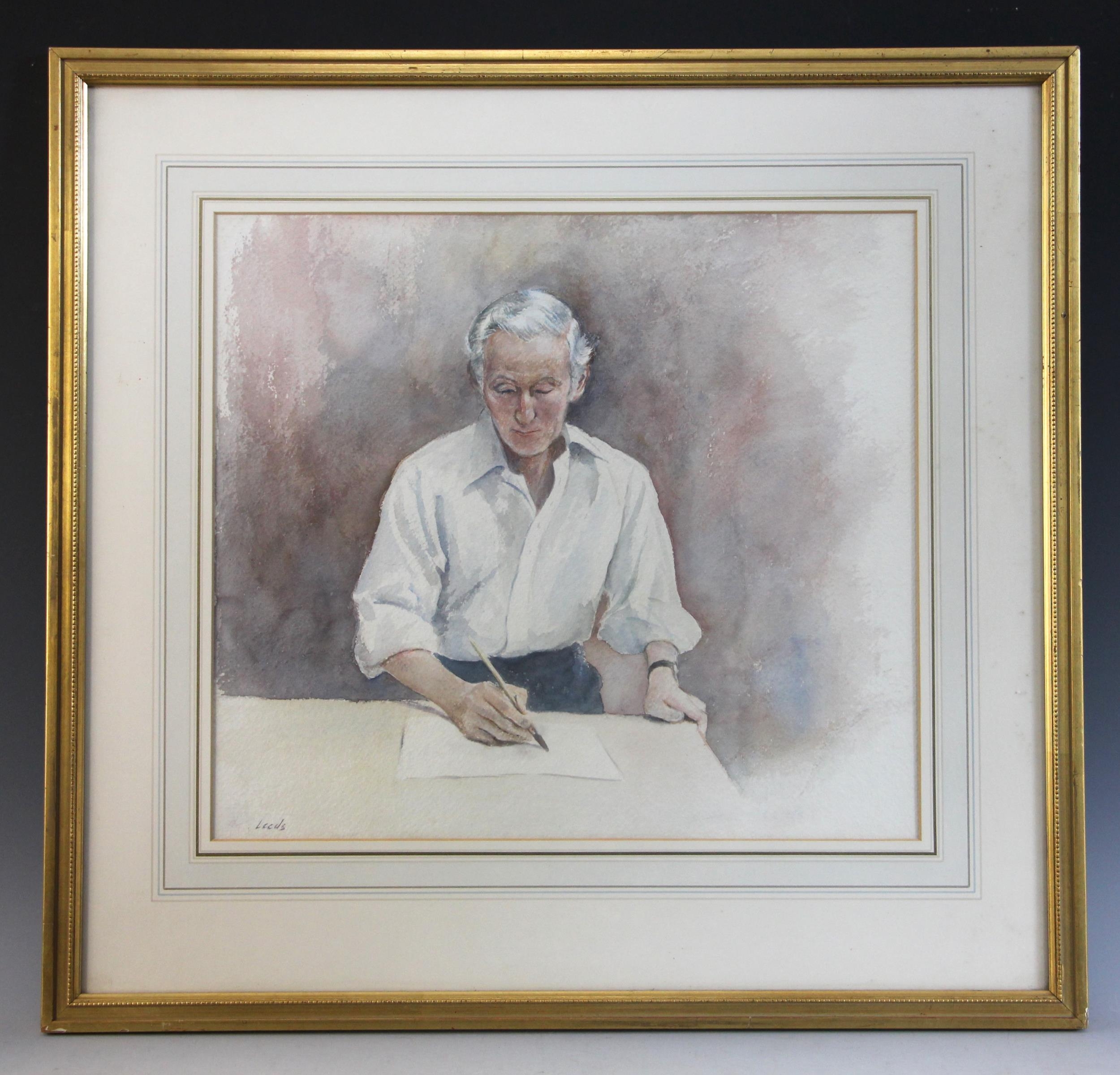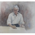 'Algernon Asprey', a half length portrait of renowned jewellery designer and goldsmith Algernon Asprey sketching at a table,