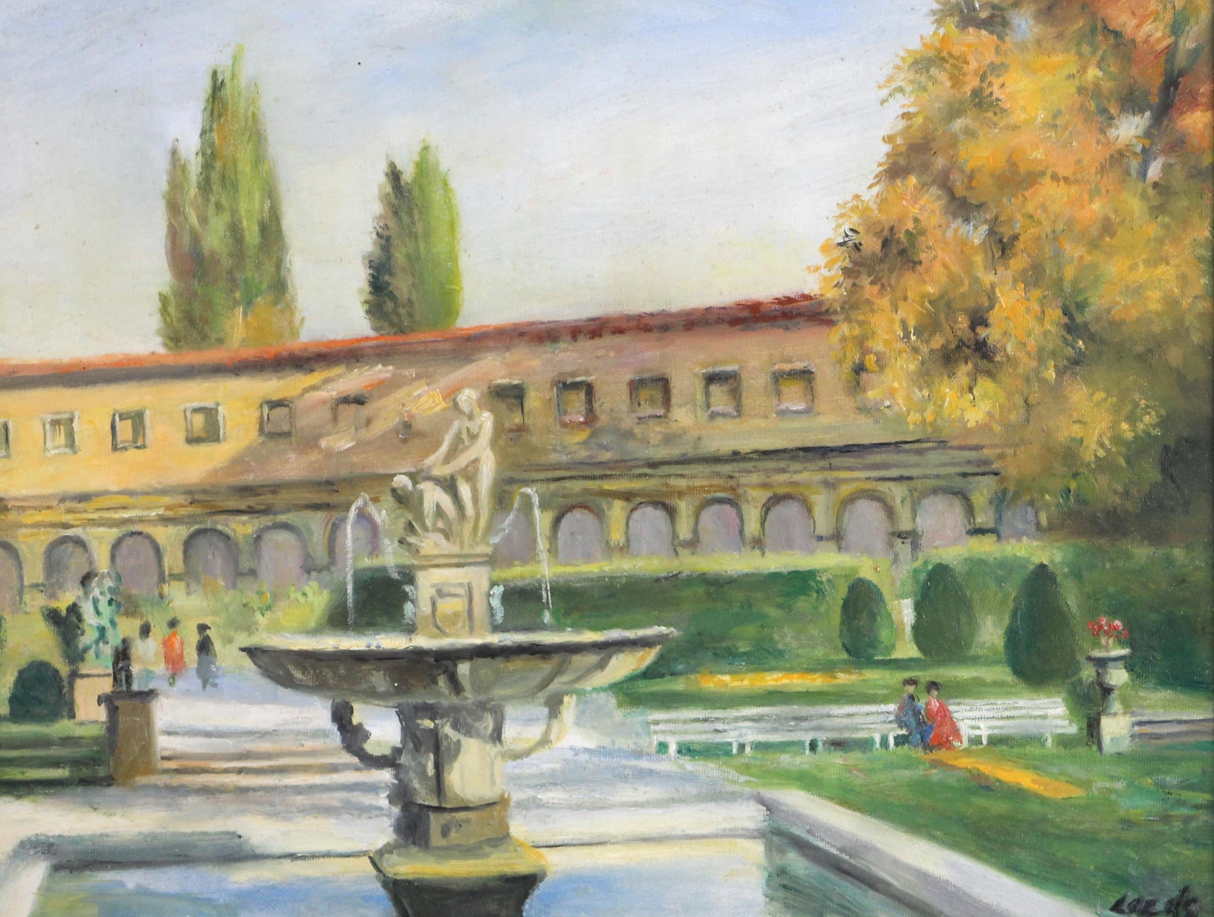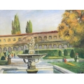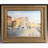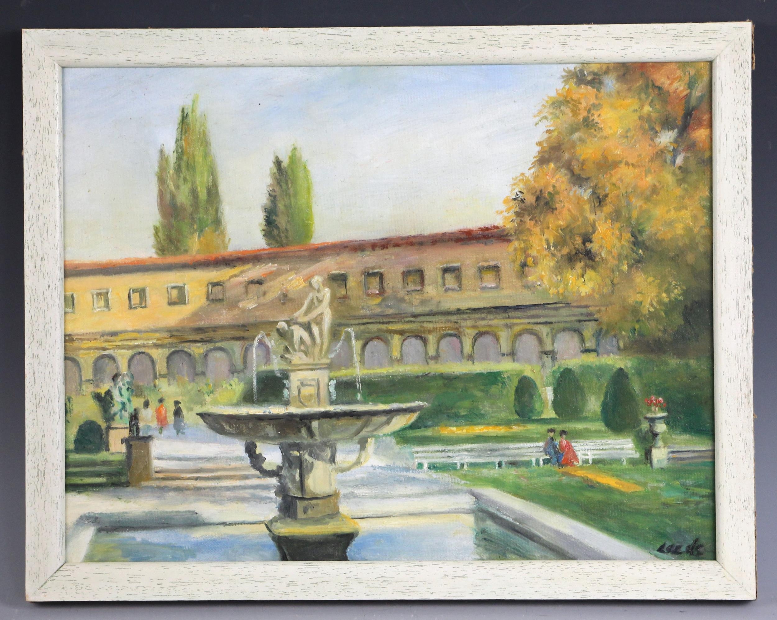 A continental townscape with fountain,